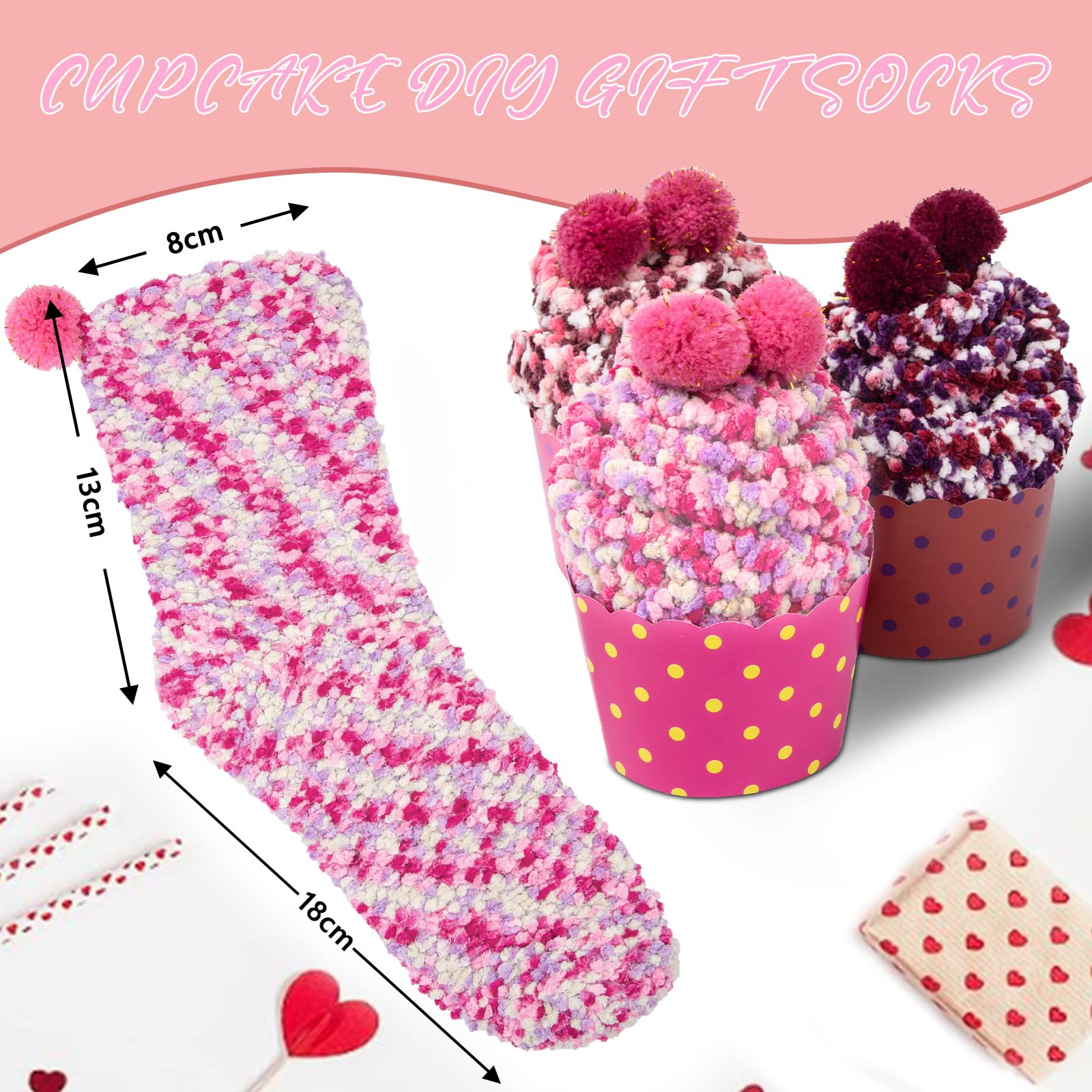 YSense 3 Pairs Fuzzy Fluffy Valentines Socks for Women Girl DIY Gift Winter Slipper Socks With Gift Boxes Cupcake