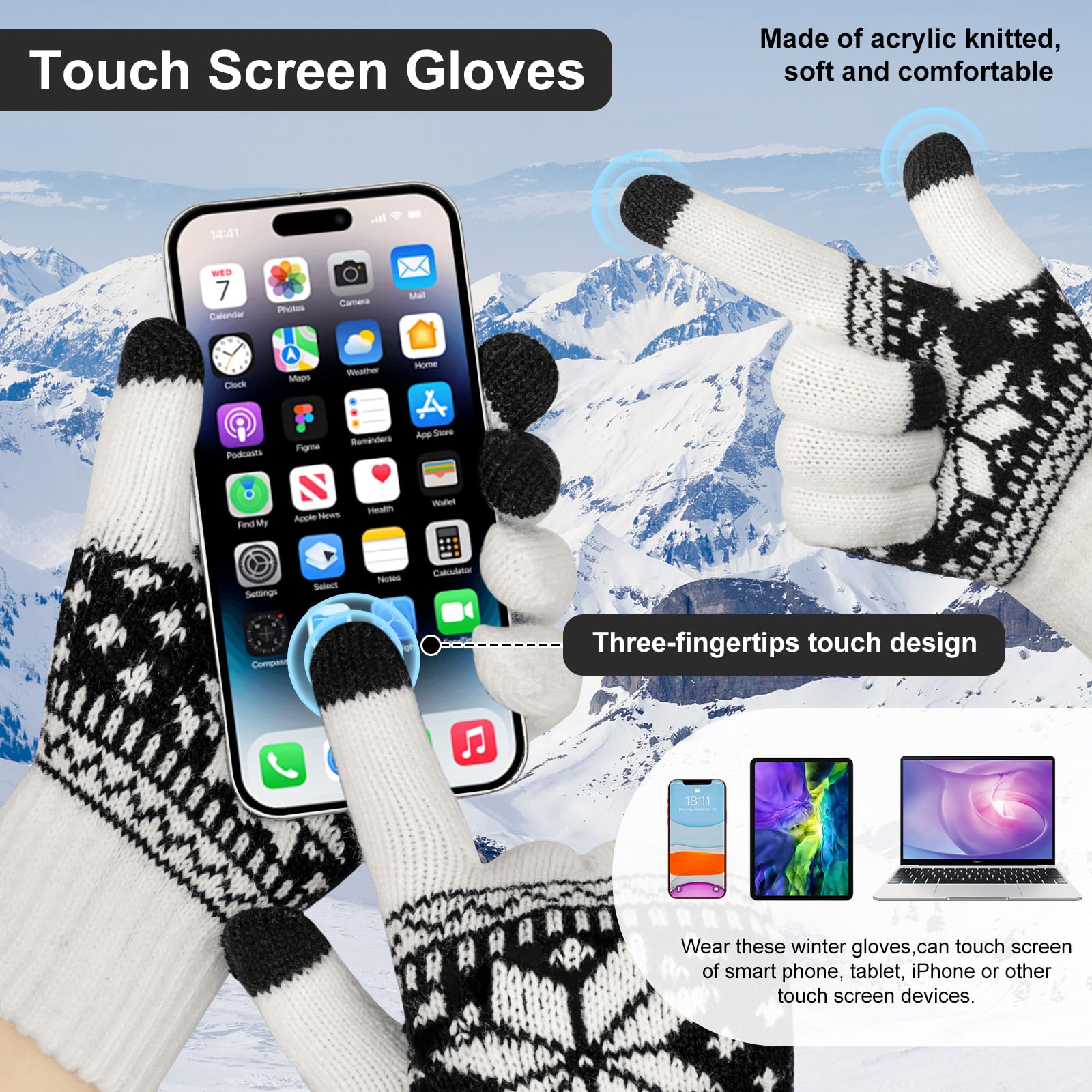 - Ideal Choice: Stylish knitted gloves printed with snowflake can be given to friends, lovers or family at Birthday, Christmas, Warm gloves with touchscreen fingers are suitable for outdoor texting, playing cell phone, driving, working, cycling, skiing , etc
