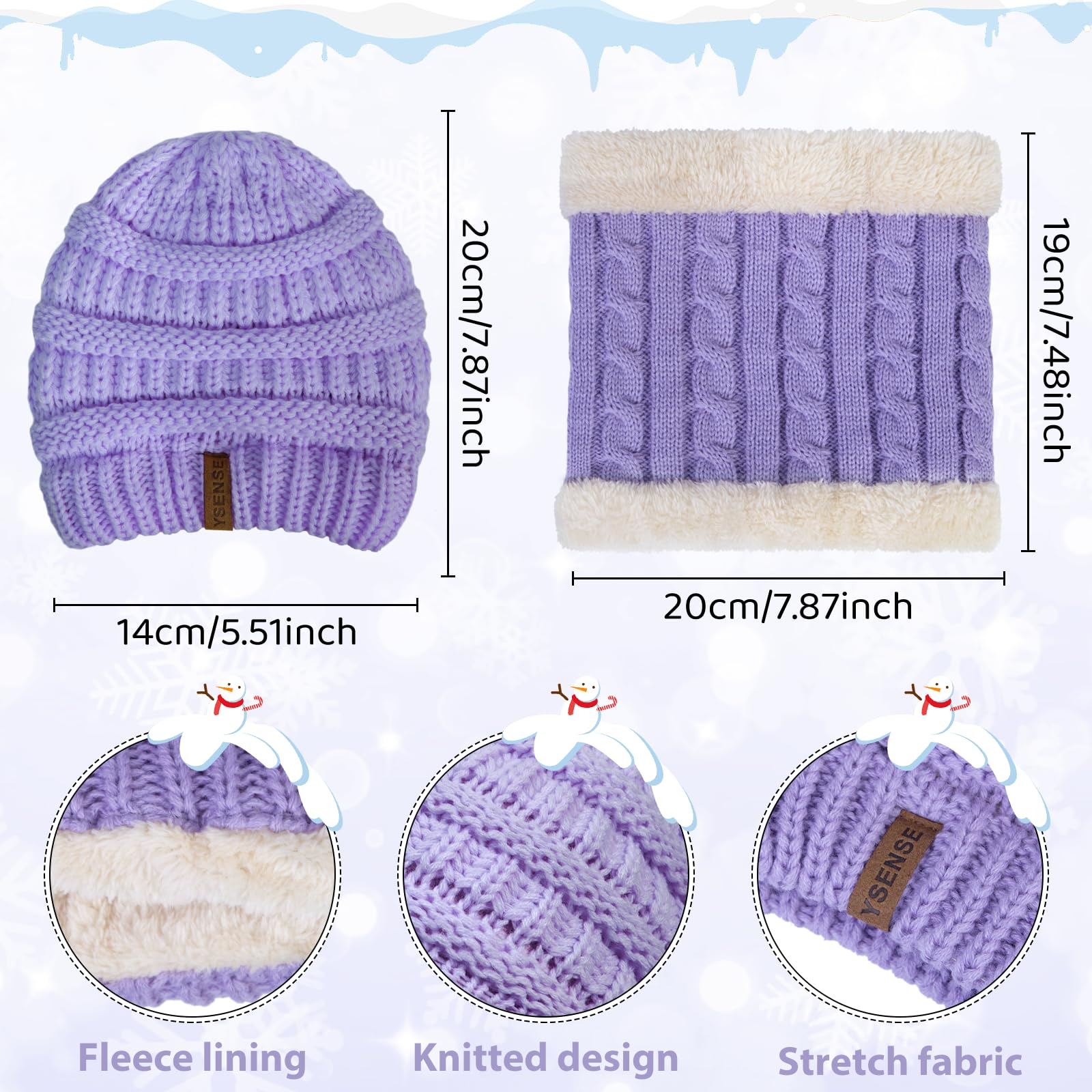 YSense 3 Pcs Kids Winter Beanie Hat Scarf Gloves Set Thick Knit Warm Fleece Fuzzy Lined Beanie Caps Mittens for Boys Girls