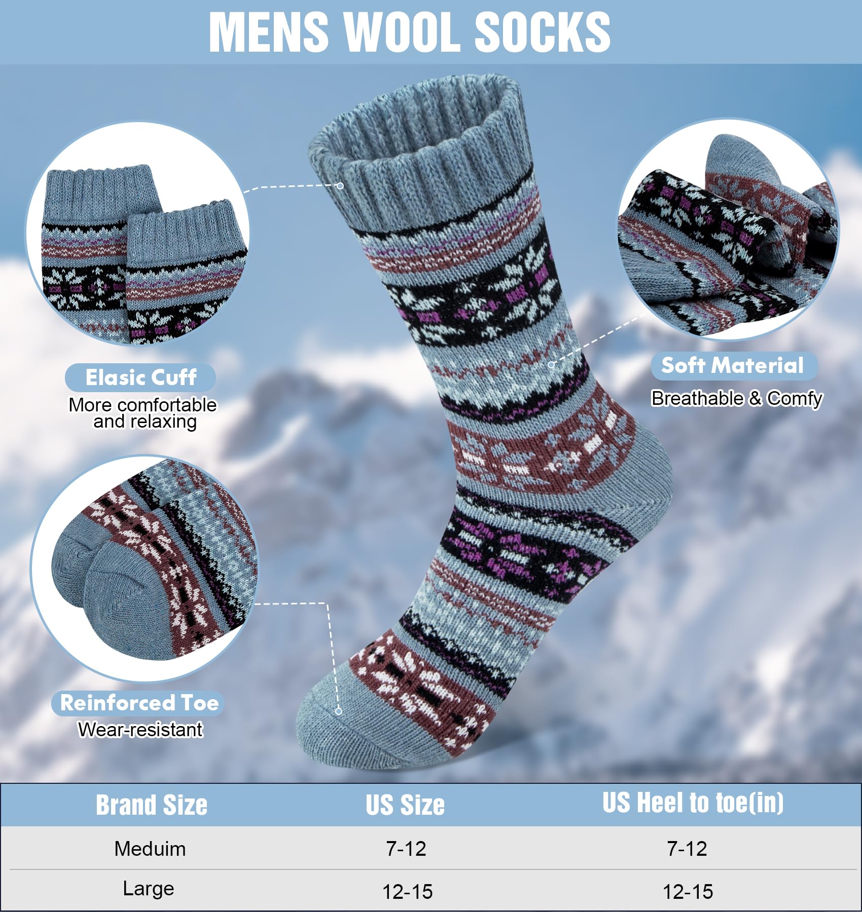 YSense 5 Pairs Mens Wool Socks Winter Warm Knit Causal Crew Socks for Men—