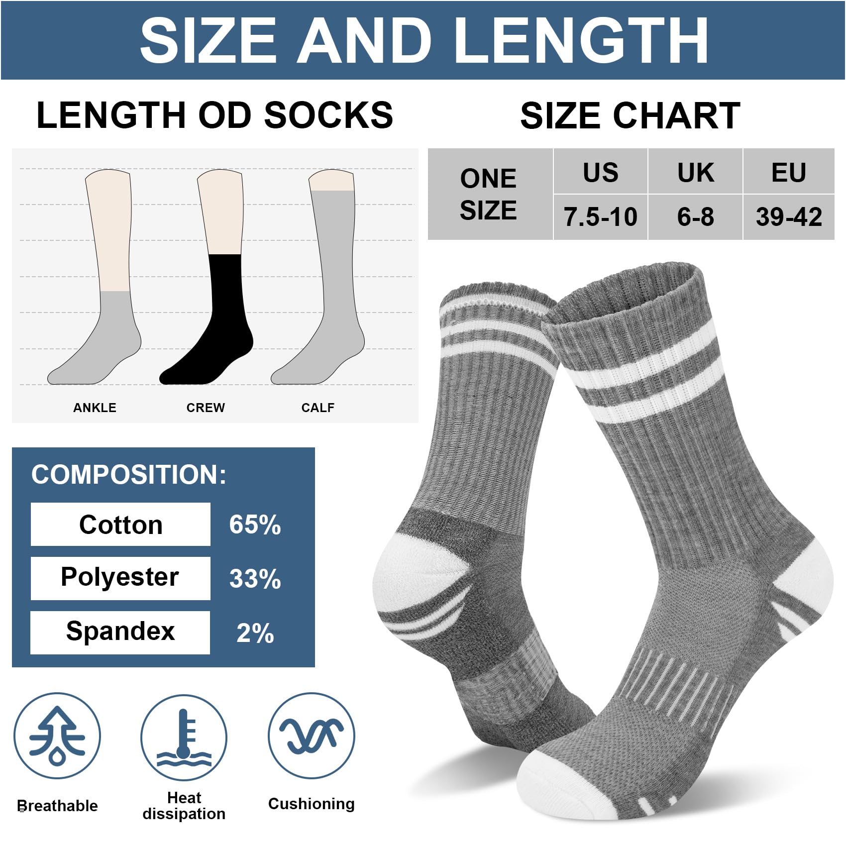 - Material: The crew socks for women are meticulously crafted from high-quality cotton to ensure durability; The thick, dense yarn texture allows for high friction resistance while providing excellent comfort and cushioning