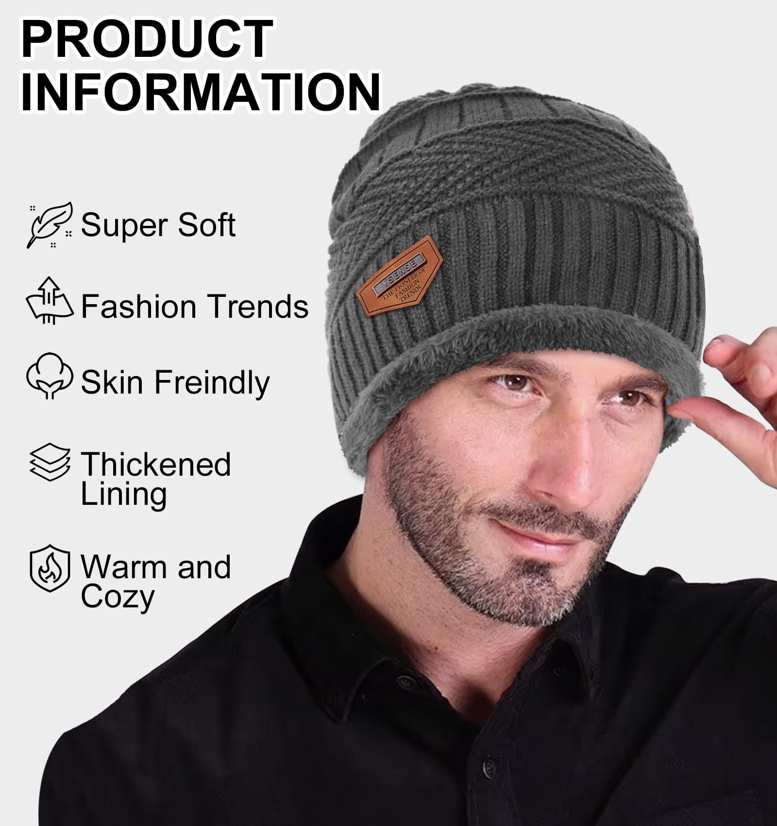 • Fabric and Benefit: Winter hats for men is made of acrylic; Soft fleece lining, the fleece hat offers double protection against cold weather, block the cold air and keep warm