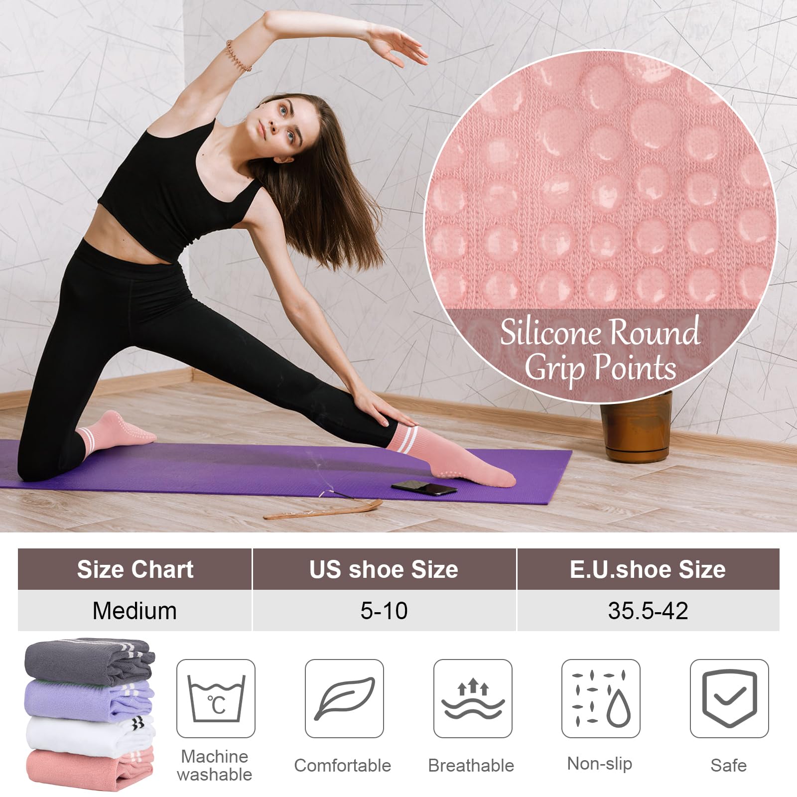 - Non Slip Grips: Womens pilates yoga socks have silicone anti-slip dots on the bottom, which can enhance the grip, anti-slip dots are sticky and evenly distributed that you can doing yoga, ballet and pilates; Yoga socks with grips can help you keep balance